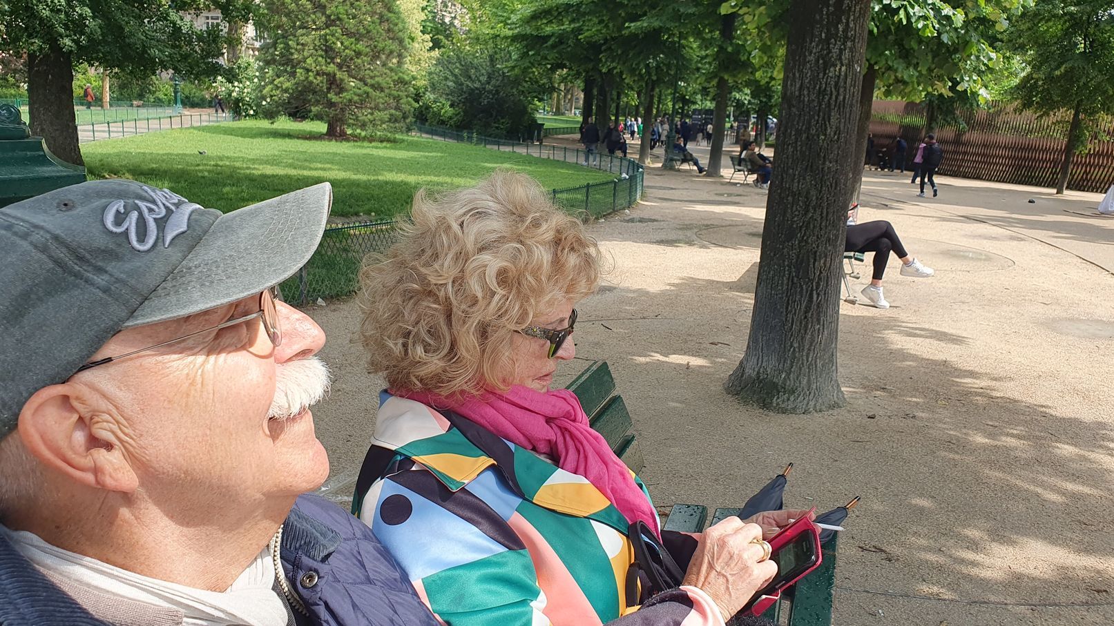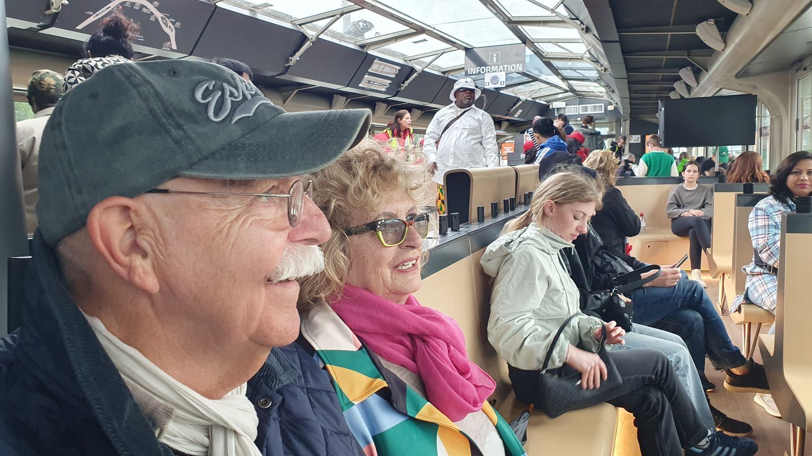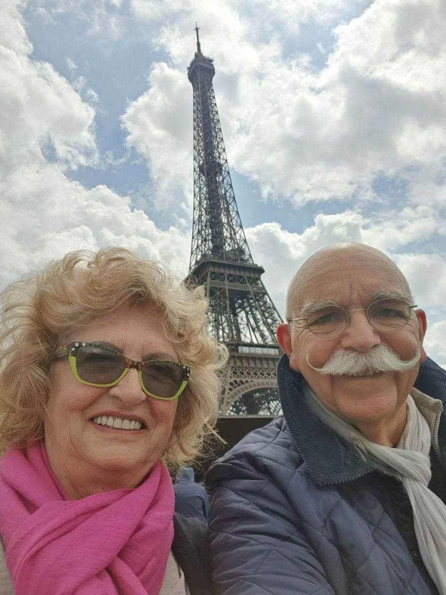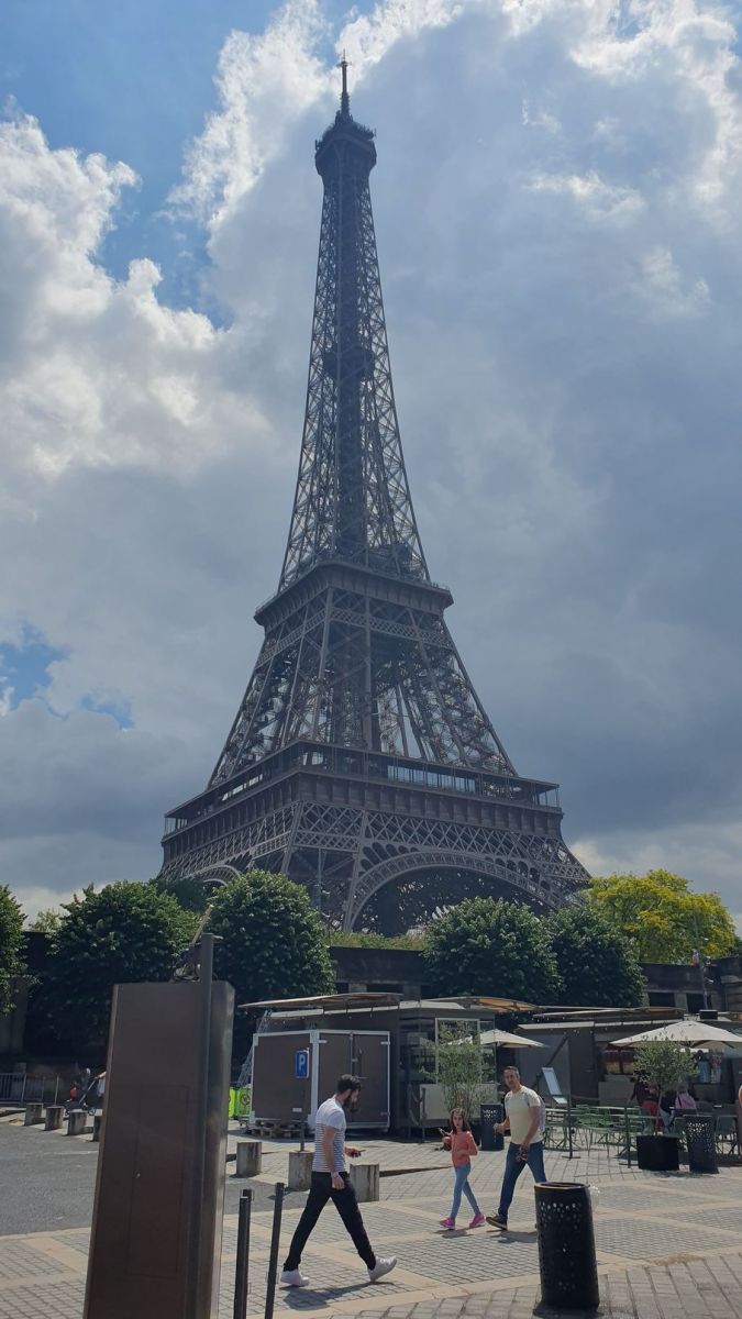 Es hatte zu regnen aufgehört und nach dem Aussteigen konnten wir noch zehn Minuten in der Sonne unter dem Eiffelturm sitzen.