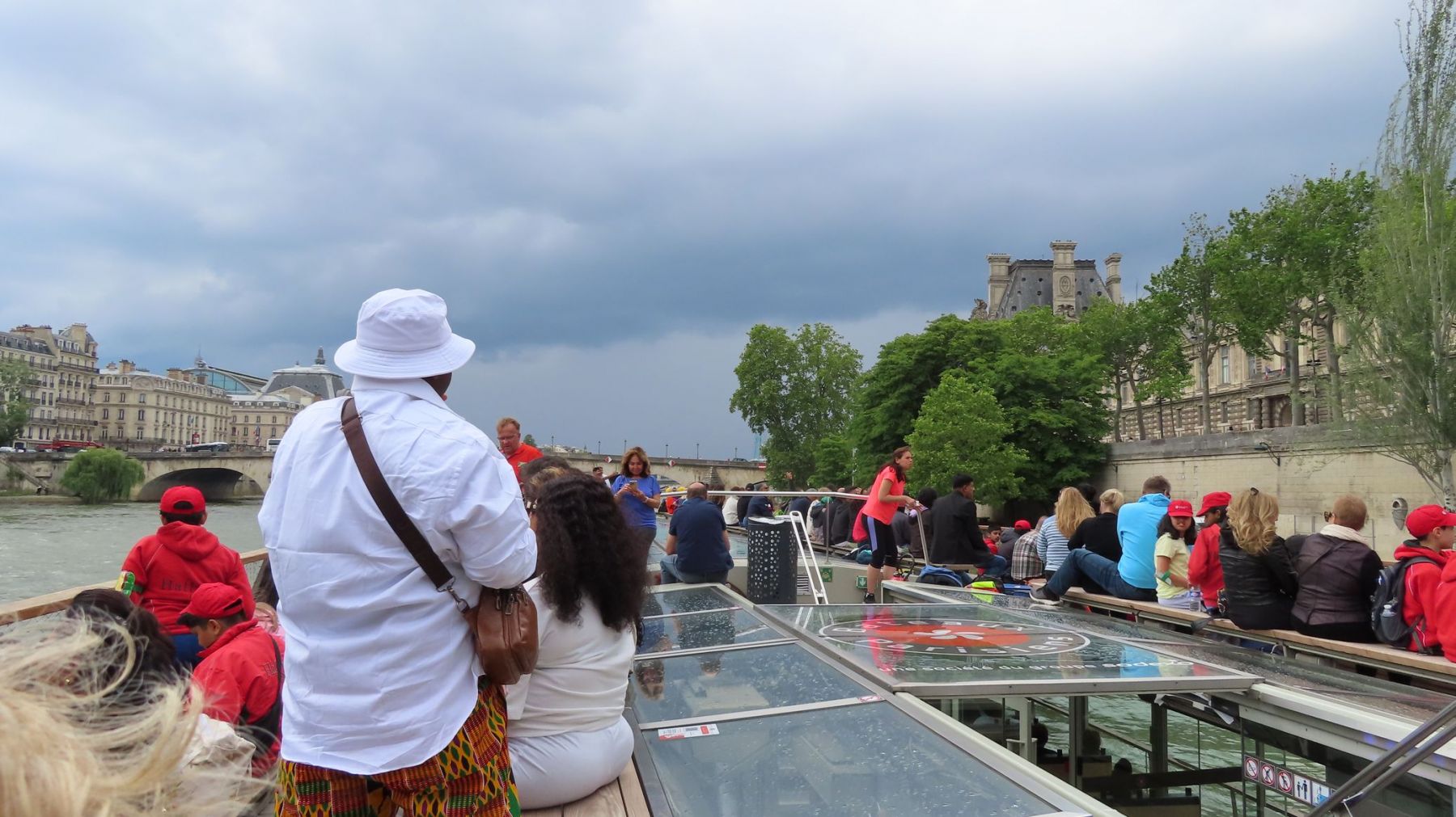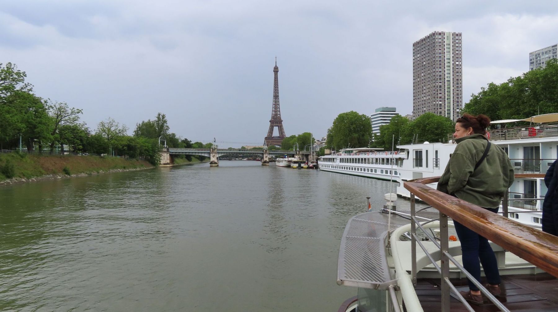 Im Regen fuhren wir mit dem Taxi zum Abfahrtspunkt, der genau unterhalb des Eiffelturms an der Seine lag. Zwischenzeitlich hörte es wieder auf mit regnen, sogar die Sonne blitzte ein wenig durch.