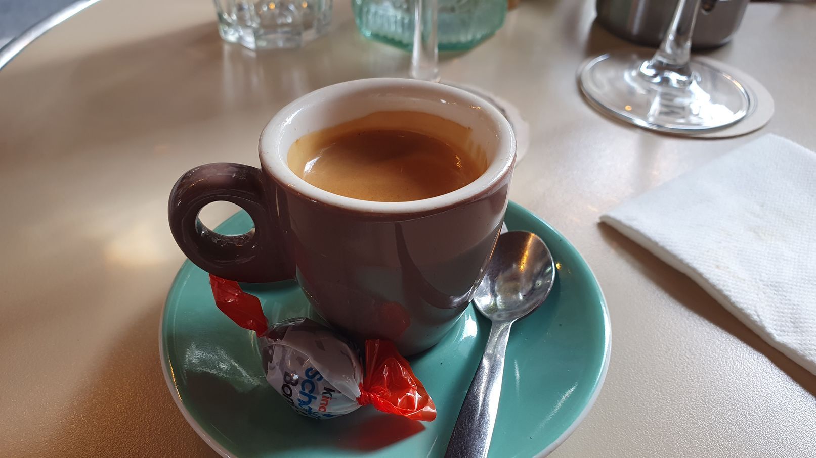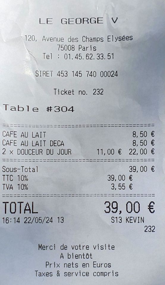 Mit dem Taxi fuhren wir zurück zu den Champs Élysées und stiegen am Café George V aus. Bevor wir zum Hotel zurückgingen, genossen wir in der zwischenzeitlich wieder scheinenden Sonne dort einen Kaffee und zwei süße Fruchttörtchen. Nicht ganz billig, aber es ist in Ordnung, wenn man inmitten der mondänen Champs Élysées sitzt. 😉