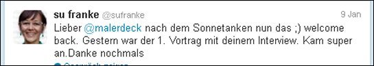 Im Februar 2010 begann ich mit zwei Konten, mit meinen Unternehmen „malerdeck“ und „Opti-Maler-Partner“, meine Twitter-Karriere. 😉 Es folgten mit „Maler-Franchise“ (06/2011) und „Mister-Social-Media“ (07/2012) noch zwei weitere Konten.