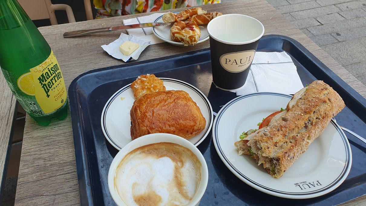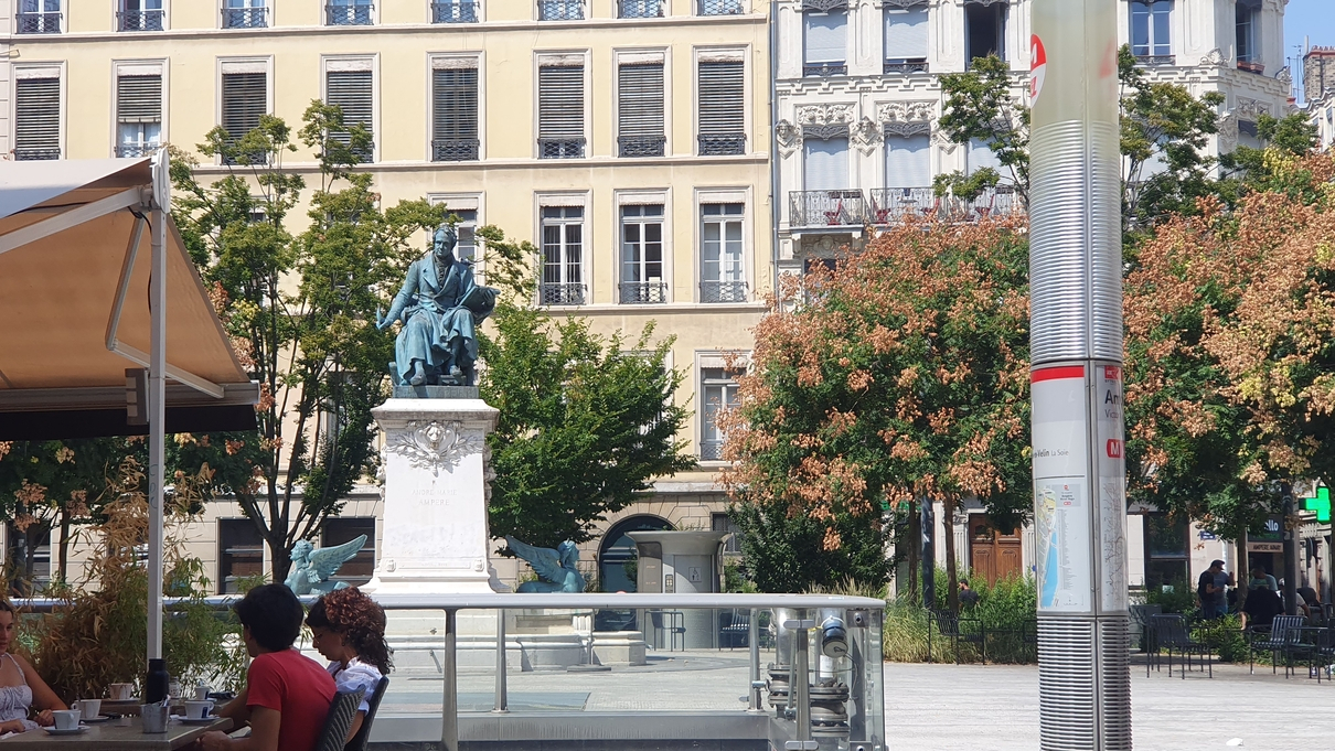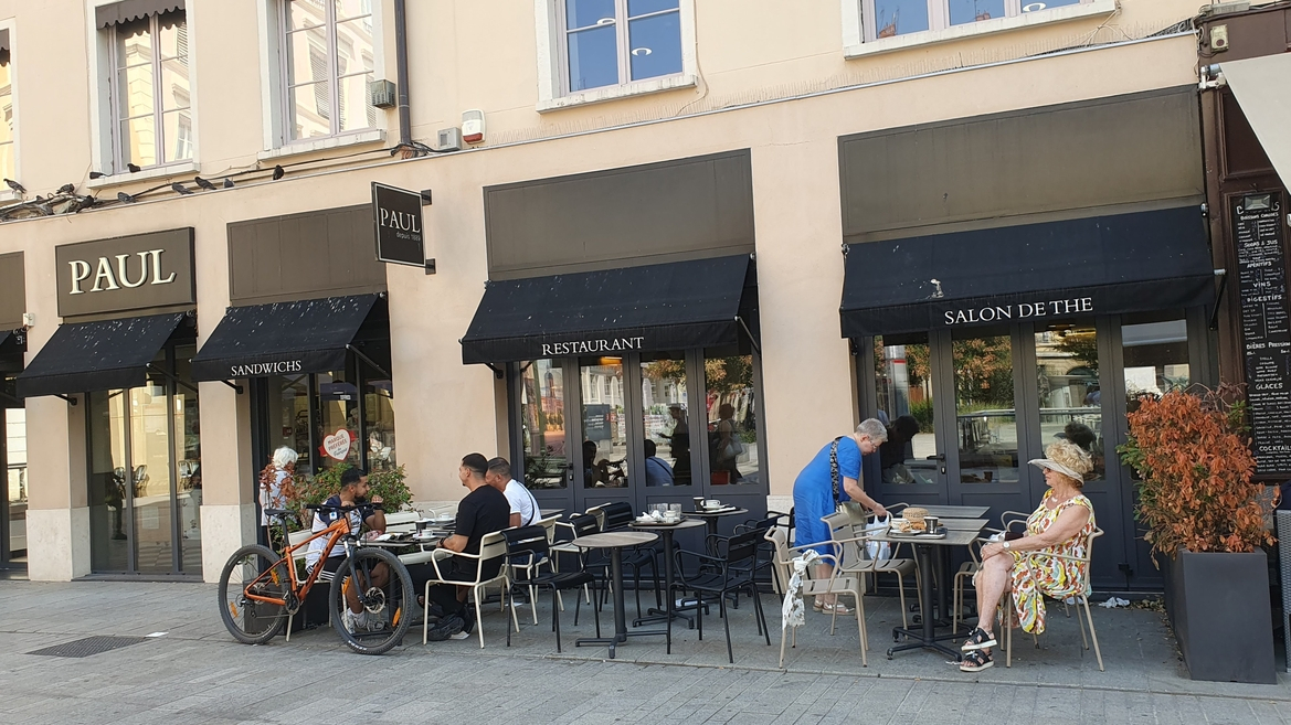 Samstag, 16. August 2025. Flussreise Lyon Mittelmeer Etappe 3 – Stadtrundgang in Lyon. Nach der gestrigen langen Autofahrt haben wir den heutigen Morgen entspannt begonnen. Direkt neben unserem Hotel fanden wir mit Paul ein stilvolles Frühstückslokal. Unter den wachsamen Augen von Ampère ließen wir uns ein leckeres Frühstück schmecken – ein guter Start in den Tag.