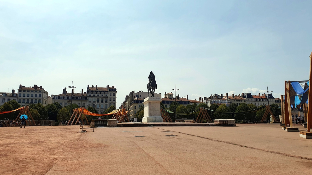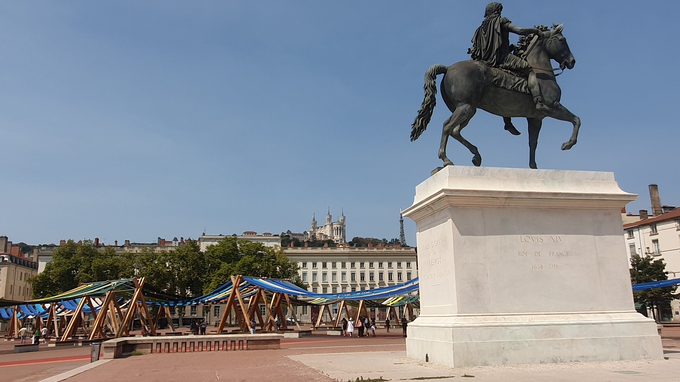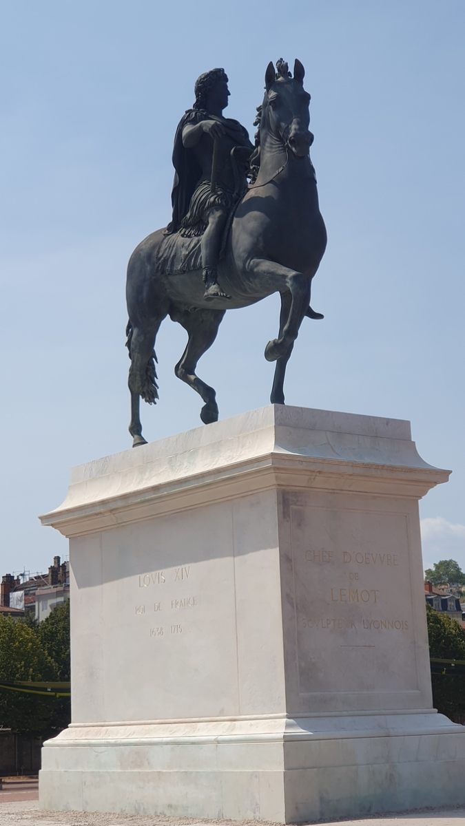 Die Reiterstatue auf dem Place Bellecour zeigt Ludwig XIV. zu Pferde. Sie wurde 1713 von dem Bildhauer François-Frédéric Lemot geschaffen, nachdem eine erste Statue im Zuge der Französischen Revolution zerstört worden war. Die heutige Skulptur stammt von 1825 und gilt als eines der bedeutendsten Wahrzeichen Lyons. Der Platz diente im Laufe der Geschichte nicht nur für königliche Feste, sondern auch für politische Kundgebungen und bleibt bis heute der zentrale Treffpunkt und Orientierungspunkt in Lyon.