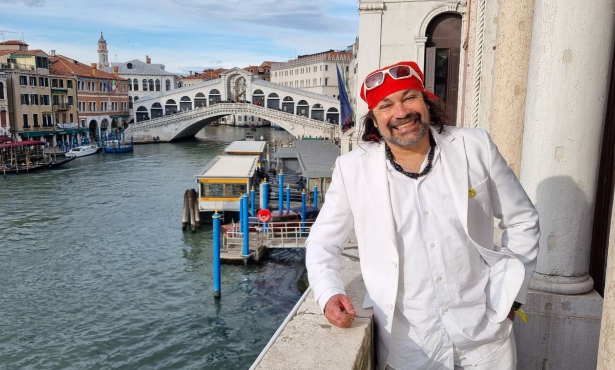 Pavel Miguel auf der Biennale in Venedig, mit seinem Werk „Zwischen Himmel und Hölle“.