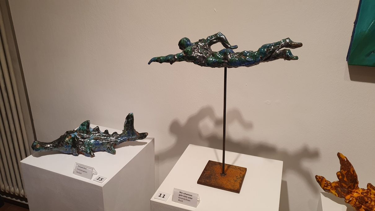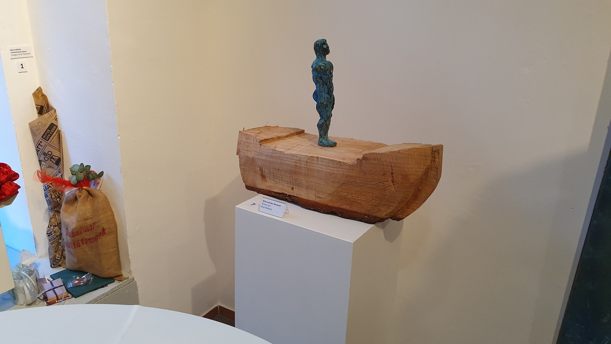 Dr. Wolfgang Wegner führte anschließend in die Ausstellung ein. Er skizzierte Pavels bewegten Lebensweg – von Cienfuegos auf Kuba über Deutschland bis nach Berghausen und nun nach Karlsruhe. In seiner Rede hob er Pavels universell vielfältige Kunst hervor, die sich keiner Schublade zuordnen lässt: Werke aus Holz, Stein, Metall, Keramik oder Bronze, jedes einzigartig, jedes mit einer klaren Botschaft. Pavels Kunst steht für Frieden, gegen Krieg, für Menschlichkeit – ein roter Faden, der sich durch all seine Arbeiten zieht.