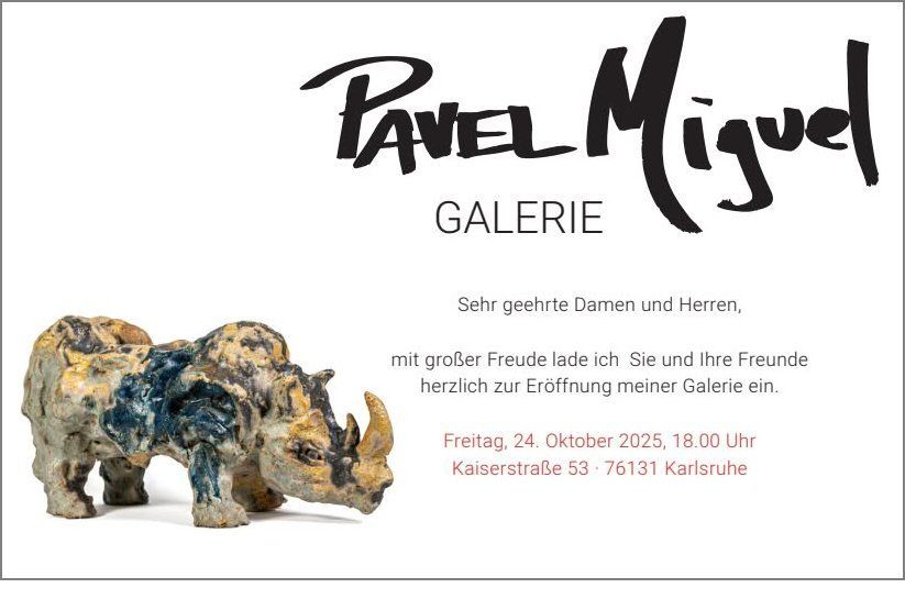 Karlsruhe, am Freitag, 24. Oktober 2025. Kubanischer Künstler Pavel Miguel eröffnet Galerie in Karlsruhe. Pavel Miguel hat es gewagt und eine Galerie in Karlsruhe, in der Kaiserstraße 53, eröffnet. Nachstehend die Einladung für den Tag der glanzvollen Eröffnung.