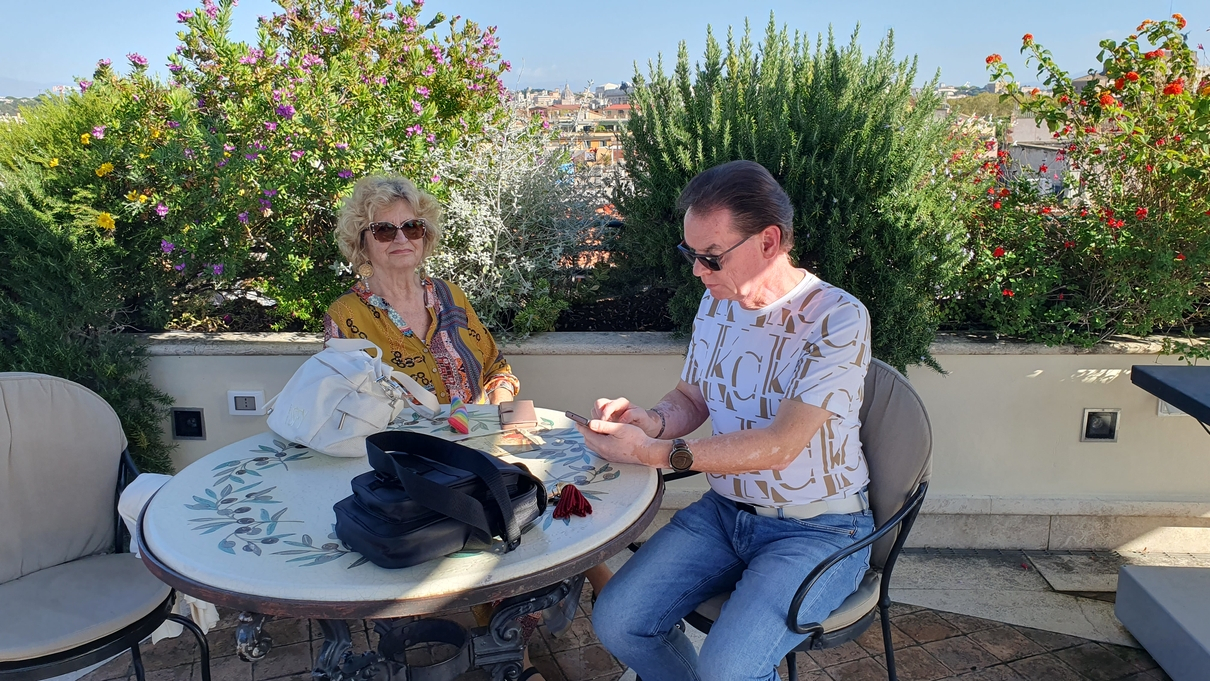 Gegen 13:30 Uhr trafen wir uns auf der Dachterrasse unseres Hotels zu einem kleinen Mittagssnack. Es ist immer wieder ein Erlebnis, den majestätischen Petersdom direkt von dort aus zu sehen. Eva und Swen zogen anschließend noch einmal los, während Rita und ich uns dem süßen Nichtstun hingaben.