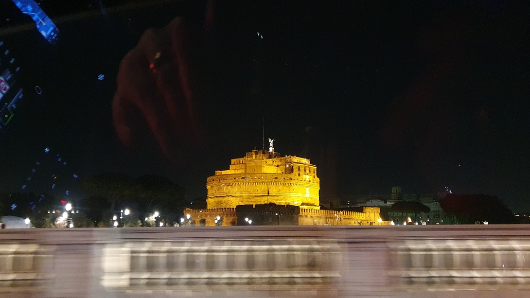 Bei der anschließenden Taxifahrt zurück zum Hotel genossen wir noch den Blick auf die hell erleuchtete Engelsburg auf der anderen Tiberseite. Ursprünglich als Mausoleum für Kaiser Hadrian im 2. Jahrhundert erbaut, diente sie später als Festung, päpstliche Residenz und Gefängnis. Heute ist sie ein Museum mit herrlichem Blick über Rom – und im Abendlicht ein faszinierender Anblick.