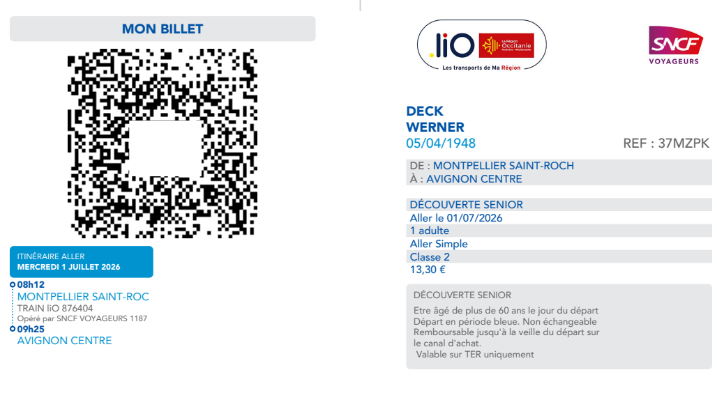 - Avignon Centre → Lyon Part-Dieu (Abfahrt: 12:17 Uhr)